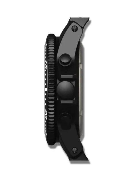 - Boîtier et lunette en acier inoxydable 316L massif avec finition PVD noir sablé
