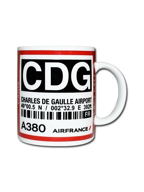 Ce mug porte le « tag » de l’aéroport de Paris Charles de Gaulle : CDG.