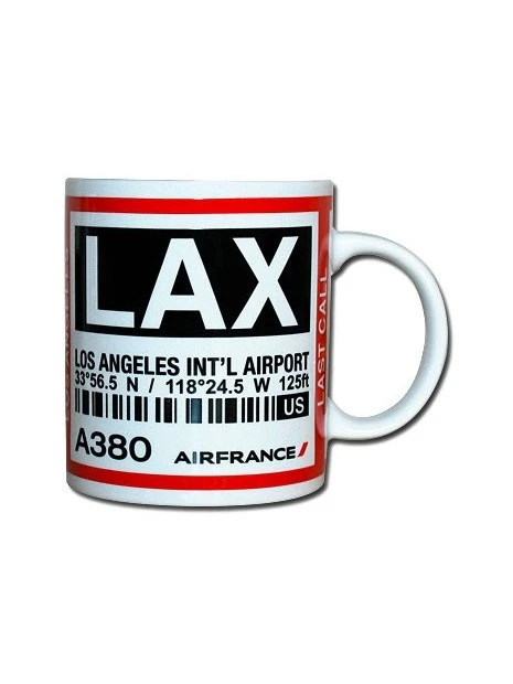 Ce mug porte le « tag » de l’aéroport de Los Angeles : LAX.