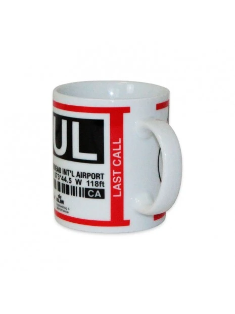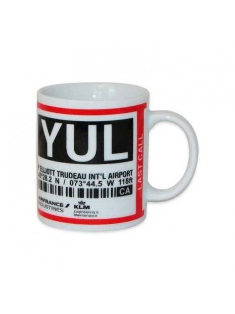 Ce mug porte le « tag » de l’aéroport de Montréal Pierre-Elliott Trudeau : YUL.