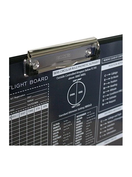 Planche de vol en PVC rigide au format A4 avec une pince sur la partie supérieure.