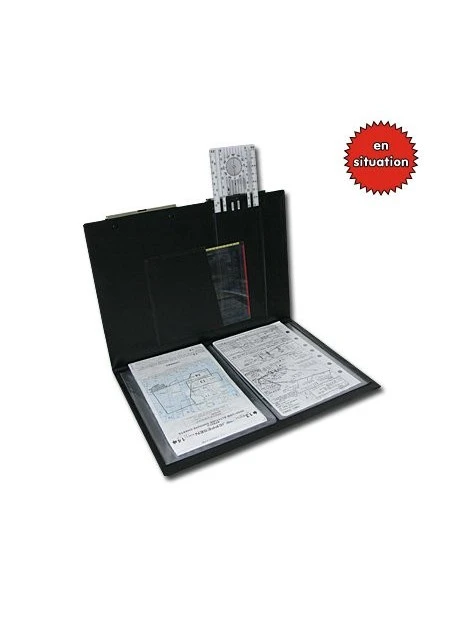 Dotée de deux pinces pour fixer cartes ou logs de navigation, elle offre la possibilité, à l’intérieur, de glisser des cartes d’approche ou cartes de terrains dans les 8 pochettes plastique (4 de chaque côté) qui peuvent même être rabattues par dessus la planche.