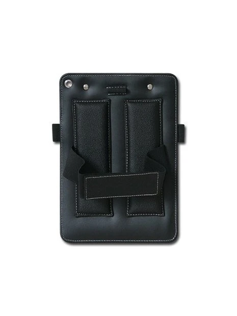 Ses coutures avec fil gris clair, qui sont le signe de reconnaissance de bien des produits Aviation Passion, lui donnent une élégance toute particulière. En cuir synthétique noir, elle est dotée d’une pince en métal, en haut, pour fixer les documents (notes, cartes, log de navigation, …) de format A5 (15 x 21 cm) et comporte trois porte-crayons, une protection en plastique transparent sur la face principale et une sangle velcro élastique avec cales pour la maintenir en place sur la cuisse de son utilisateur.