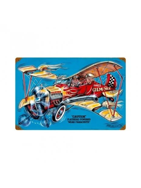 De la collection sous licence Bob McCoy, cette enseigne en métal vintage Gilmore Airplane mesure 44 x 29 cm et pèse 1 Kg. Cette enseigne en métal vintage est fabriquée à la main en utilisant de l’acier américain de gros calibre, tout comme l’artisanat du passé pour résister à l’épreuve du temps !