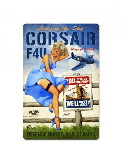 Cette plaque en métal vintage Lady of the Sky – Corsair F4U, de la collection sous licence Baron von Lind, est fabriquée à la main en utilisant de l’acier américain de gros calibre, utilisant des matériaux de la plus haute qualité et les procédures de fabrication les plus durables. Le processus utilisé est connu sous le nom de sublimation, où l’image est cuite dans un revêtement en poudre pour une finition durable, tout comme l’artisanat du passé pour résister à l’épreuve du temps !