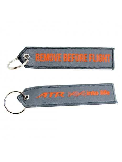 Porte-clés « ATR – into life / Remove before flight » (fond gris)