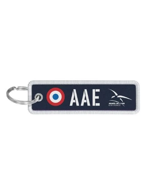 Porte-clés en tissu bleu marine, décoré de la cocarde tricolore, des initiales AAE, et du logo de l’Armée de l’Air et de l’Espace. Pratique pour tous vos déplacements.