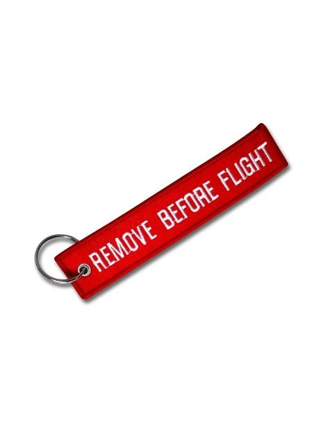 Le mythique avion P51 Mustang brodé d’un côté et la formule très aéronautique « Remove Before Flight » de l’autre !