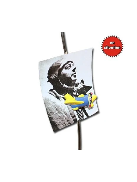Affichez vos photos sur votre bureau à l’aide de ce porte photos original. Vous avez la possibilité d’y fixer 3 photos à l’aide de 3 petits aimants en forme d’avion.