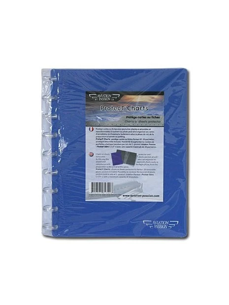 Ce protège-fiches, conçu par Aviation Passion, comporte 20 pochettes plastique amovibles et repositionnables à souhait, grâce à son astucieux système d’anneaux en « T » ! Cela permet au pilote d’organiser ses cartes d’aérodrome ou d’approche facilement selon la phase du vol !