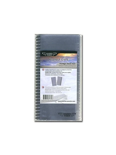 Un carnet de 9 pochettes reliées, au format 12.5 x 24 cm, avec couverture transparente souple, pour protéger vos check-lists.