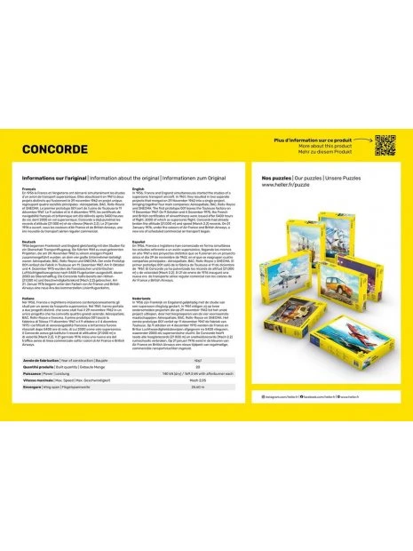 En 1956 la France et l’Angleterre ont démarré simultanément les études d’un avion de transport supersonique. Elles aboutissent en 1961 à deux projets distincts qui fusionnent le 29 novembre 1962 en projet unique, regroupant quatre sociétés principales : Aérospatiale, BAC, Rolls-Royce et SNECMA. Le premier prototype 001 sort de l’usine de Toulouse le 11 décembre 1967. Le 9 octobre et le 4 décembre 1975, les certificats de navigabilité français et britannique ont été délivrés après 5400 heures de vol, dont 2000 en vol supersonique. Concorde a déjà pulvérisé les records d’altitude (21 000 m) et de vitesse (March 2,2). Le 21 janvier 1976 a ouvert, sous les couleurs d’Air France et de British Airways, une ère nouvelle du transport aérien régulier commercial. F-BTSD, numéro de série 213: Se retire au Bourget pour les visiteurs du Musée de l’Air et de l‘Espace. F-BVFA, numéro de série 205: Se retire à Washington au National Air and Space Museum’s Steven F. Udvar-Hazy Center. F-BVFB, numéro de série 207: Débarque à Speyer et remonte en camion pour le Technik Museum Sinsheim. F-BVFC, numéro de série 209: Rentre en terre natale au milieu de ses enfants, Airbus, à Aeroscopia Toulouse. F-BVFF, numéro de série 215: Exposé à Roissy.