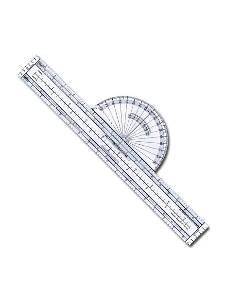 Règle rapporteur permettant de mesurer les N.M. et S.M. sur des cartes aux 1/250 000e, au 1/500 000e et au 1/1 000 000e.