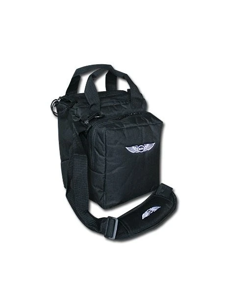 Une pochette sur le devant (19 x 20 x 6 cm), compléte le compartiment principal (28 x 25 x 12 cm). A l’arrière, vous pourrez encore glisser une carte et quelques documents (plan de vol par exemple). Enfin, sur les côtés, des petites pochettes accueilleront stylos, lampe de poche et téléphone portable.