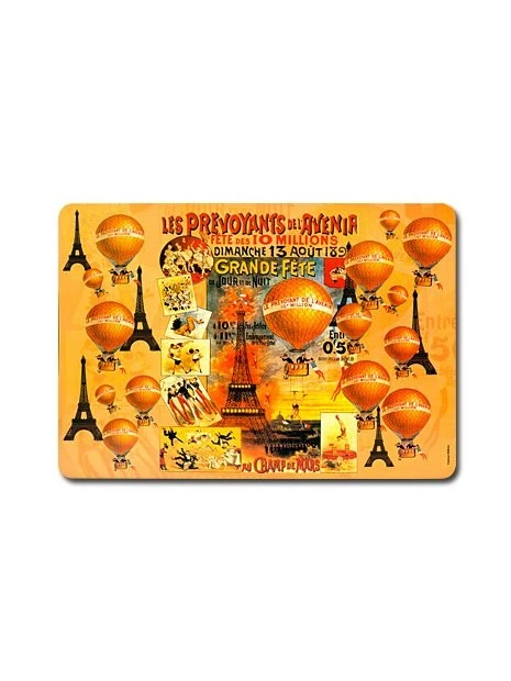 Présentant un Paris de la fin du XIXe siècle, dans cette atmosphère si particulière propre à cette époque, ce set de table est décoré d’une multitude de montgolfières et de Tours Eiffel ! N’importe quel passionné d’aéronautique sera ravi d’utiliser ce très bel article qui n’a rien à envier aux plus belles affiches vintage d’Air France ou de l’Aéropostale !