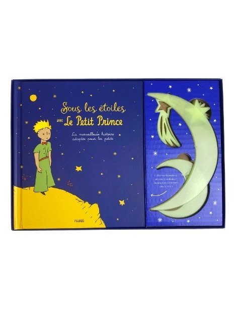 Ce coffret apaisant rendra le moment du coucher magique pour les petits rêveurs. Il contient un album du Petit Prince spécialement adapté aux jeunes lecteurs, ainsi que 10 décorations phosphorescentes à disposer au-dessus du lit pour illuminer la nuit !