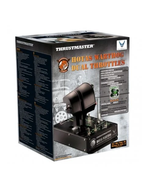 La partie manette des gaz est également spécifique, avec un système de double manette des gaz permettant le contrôle indépendant de 2 moteurs : un système de verrouillage permet de solidariser ou non les 2 poignées entre elles. Pour cette partie aussi la technologie à capteur magnétique utilisée (résolution de 14 bits et 16384 valeurs sur chaque manette) permet une précision inégalée. Les passages en positions « Idle » et « Afterburner » se font via un système Pull and Push pour encore plus de réalisme. L’Afterburner est débrayable, ce qui permet de parfaitement s’adapter au type d’avion piloté. Les manettes bénéficient d’un total de dix-sept boutons d’action, d’un « point of view » hat et d’un « mouse hat / slew control ».