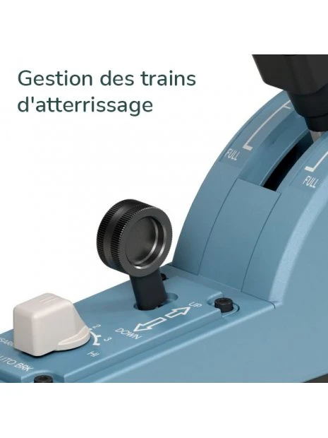 • Commandes emblématiques de compensateur, train d’atterrissage, freinage automatique, compensateur de direction et de frein de stationnement pour une immersion totale