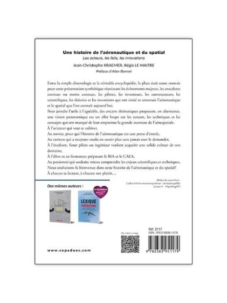 À l’aviateur qui veut se cultiver, au novice, pour qui l’histoire de l’aéronautique est une porte d’entrée, au curieux qui a toujours voulu en savoir plus sans jamais oser le demander, à l’étudiant, futur pilote ou ingénieur voulant acquérir une solide culture de son domaine, à l’élève et au formateur préparant le BIA et le CAEA, au passionné qui souhaite mieux comprendre les enjeux scientifiques et techniques, nous souhaitons la bienvenue dans cette histoire de l’aéronautique et du spatial !